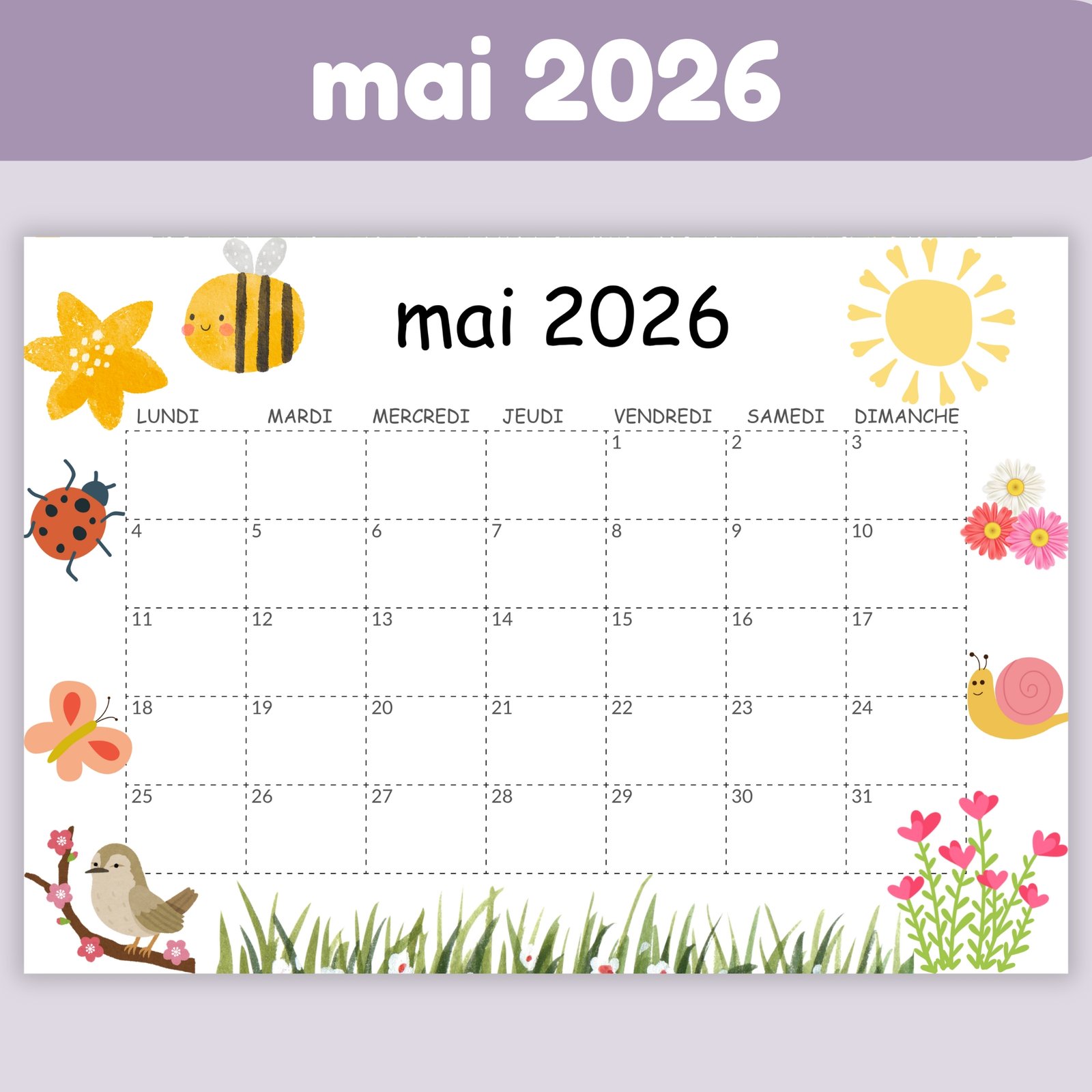 Calendrier mai 2026 à imprimer